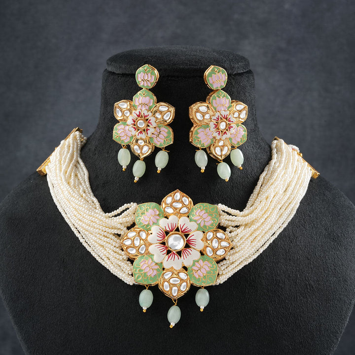 Liyana- Stone studded Neckpiece set (Parrot Green)