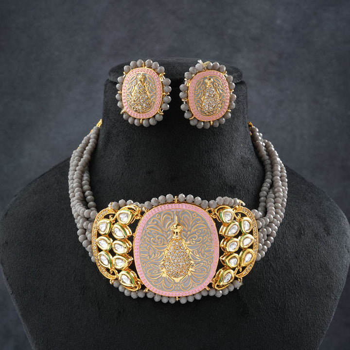 Elevate your ensemble with the Tanira Stone Studded Neckpiece Set in sophisticated gray. This curated collection features meticulously crafted pieces adorned with premium stone embellishments, designed to complement both traditional and contemporary styling. The neutral gray palette ensures versatile coordination across your wardrobe, while the studded detailing adds refined texture and visual interest. Perfect for festive occasions, celebrations, or everyday elegance, this set delivers polished sophistication with expert craftsmanship.