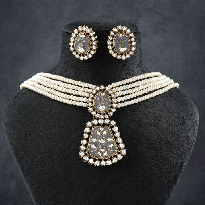 Ziva- Stone studded Neckpiece set (Gray)