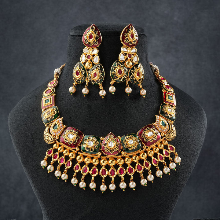 Elevate your ethnic ensemble with the Arzaya Stone Studded Hanging Pearls Neckpiece Set. This sophisticated piece combines lustrous pearls with intricately studded stones, creating a striking focal point for traditional and contemporary occasions. The hanging pearl design adds graceful movement and dimension, while expert craftsmanship ensures durability and timeless appeal. Perfect for weddings, festivals, and special celebrations, this neckpiece set delivers the refined elegance that defines statement jewelry. A versatile investment piece that complements both classic and modern styling.