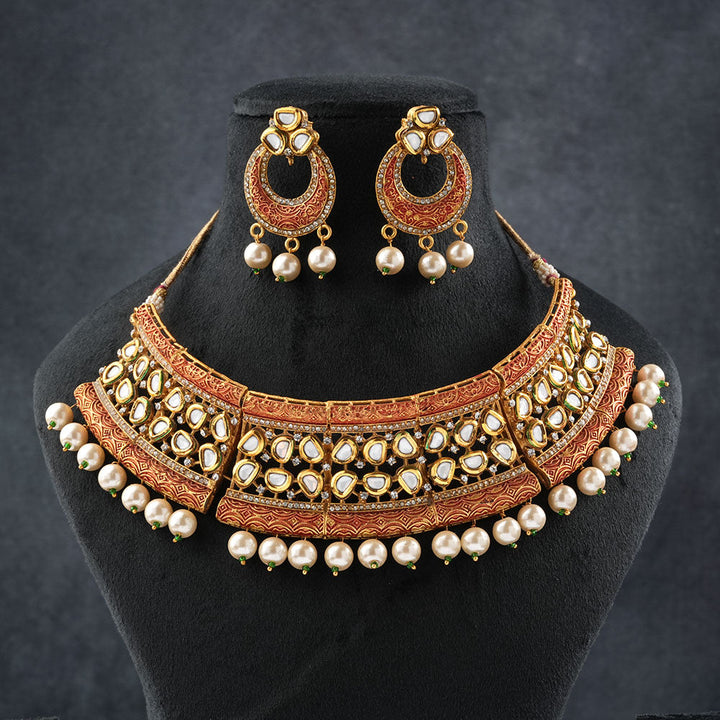 Elevate your ethnic ensemble with the Siyona neckpiece set, where traditional craftsmanship meets contemporary elegance. This exquisite collection features intricately stone-studded designs paired with delicate hanging pearls that catch light beautifully. Each piece is thoughtfully crafted to complement festive occasions, weddings, and celebrations. The combination of semi-precious stones and lustrous pearls creates a sophisticated layered look that enhances any outfit. Perfect for those who appreciate fine jewelry details and timeless appeal.