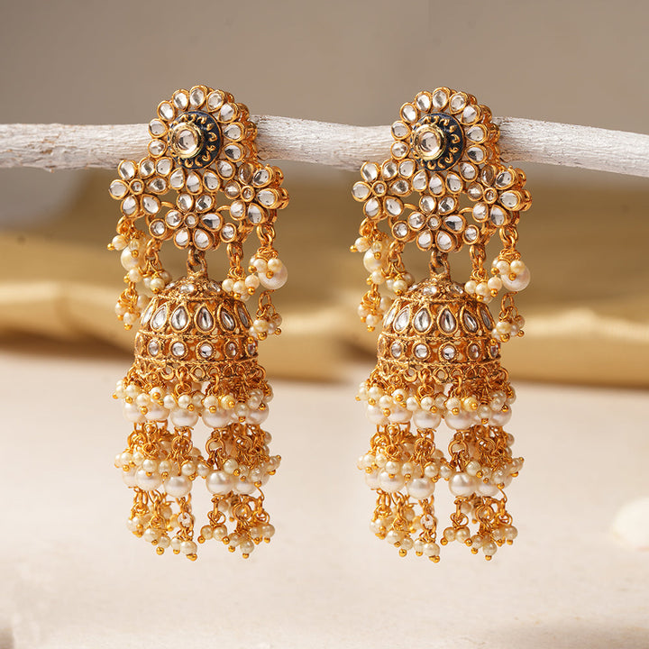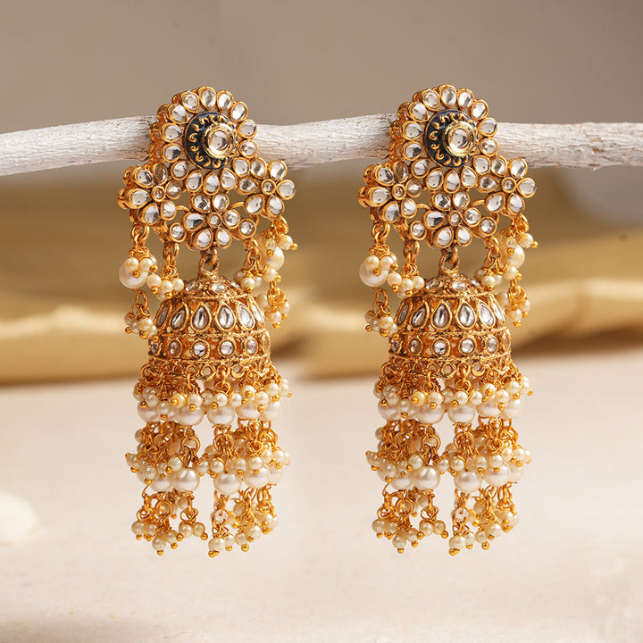 Elevate your elegance with the Maira Stone Studded Hanging Pearl Dangler Earrings. Expertly crafted, these earrings showcase delicate stones that catch the light beautifully, paired with timeless hanging pearls for a refined finish. Their lightweight design ensures comfortable wear, making them ideal for both formal occasions and everyday sophistication. Add a touch of classic charm to your collection with these exquisitely detailed earrings.