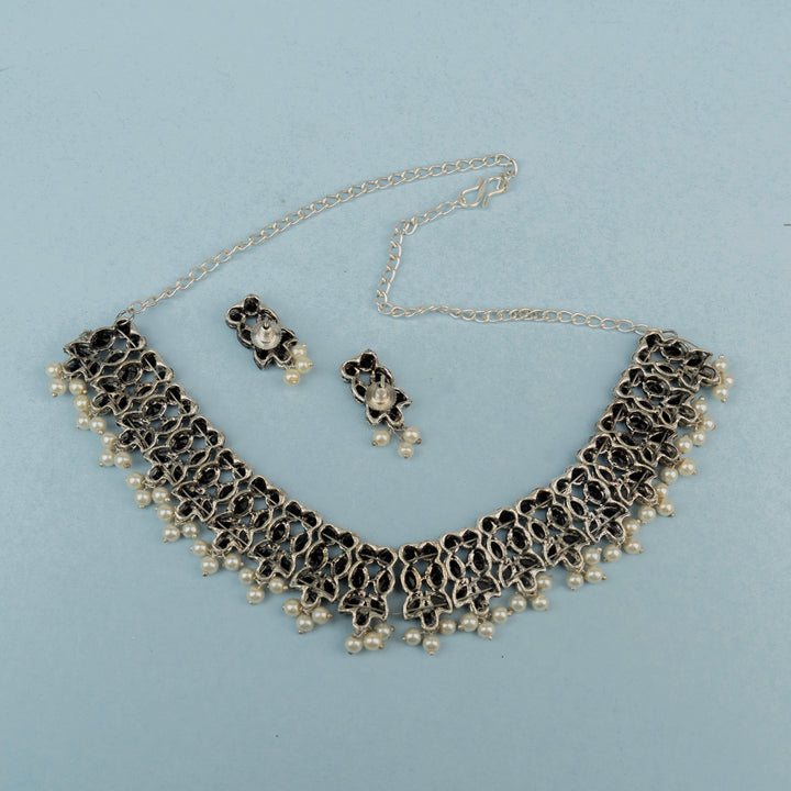 Make a statement with our black stone studded German silver neckpiece set. Bold and sophisticated, it's ideal for formal occasions and evening events.