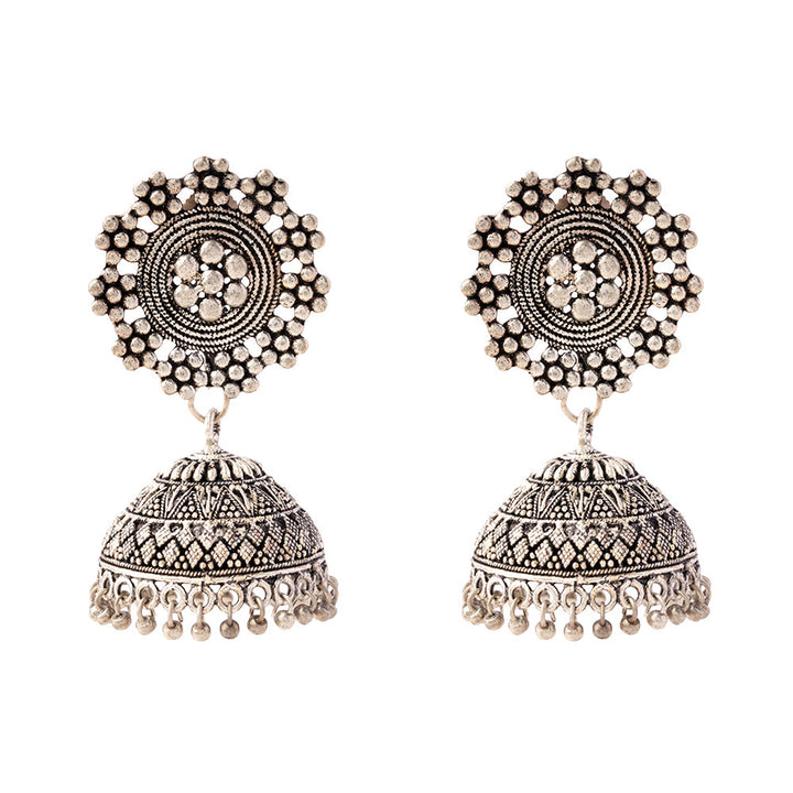 | Style Tip: Intricately designed jhumkas for a touch of traditional elegance. |