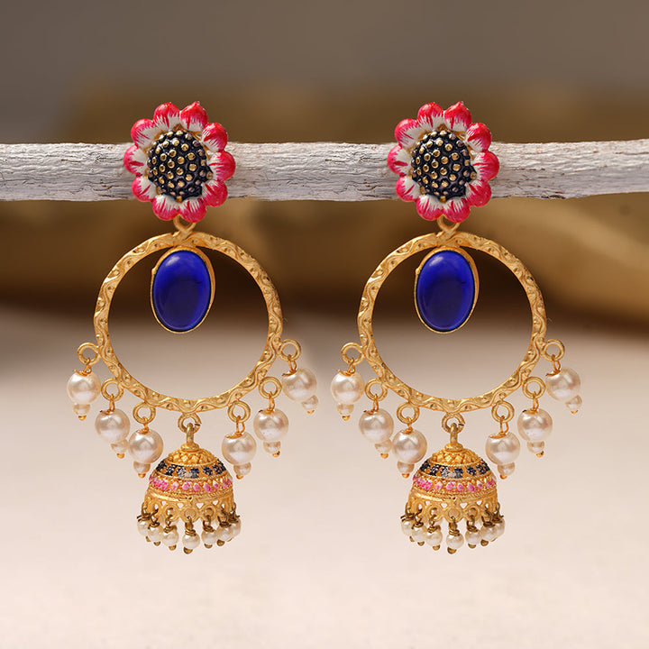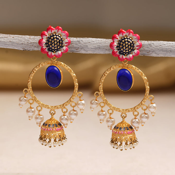 Elevate your traditional collection with the Laila Stone Studded Hanging Pearl Jhumki Earrings in blue. Featuring intricate stone work paired with delicate hanging pearls, these earrings offer a refined blend of elegance and cultural artistry. Perfect for enhancing festive or formal wear, they provide a sophisticated touch that highlights craftsmanship and timeless beauty.