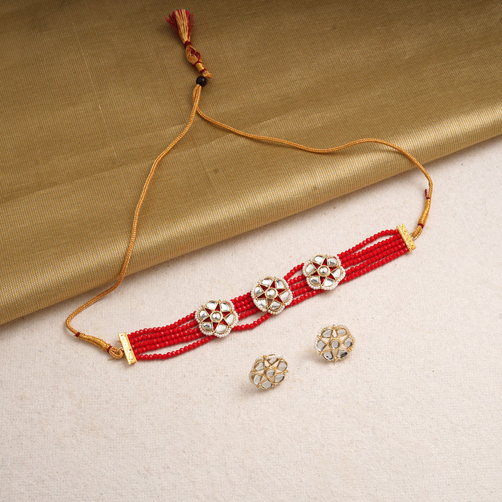 The Kirtika Stone Studded Beaded Neckpiece Set in Red offers a refined blend of traditional craftsmanship and contemporary design. Featuring intricately placed stones and carefully strung beads, this set elevates any outfit with its rich, vibrant hue. Crafted to provide both durability and elegance, it is ideal for enhancing formal occasions or festive celebrations with a distinctive ethnic touch.