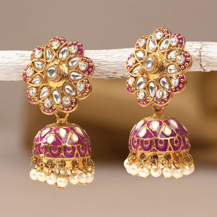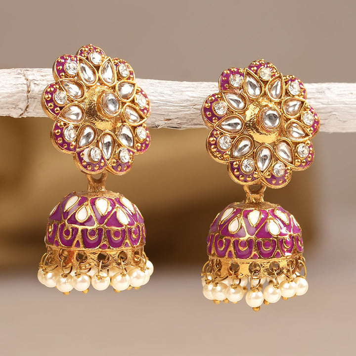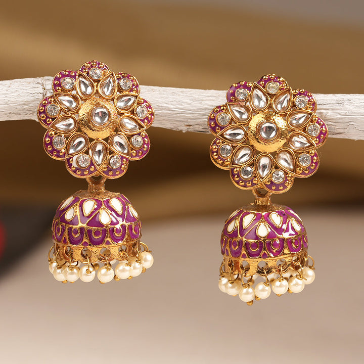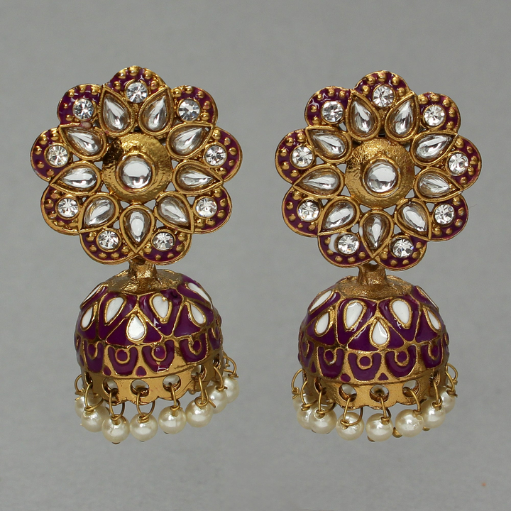 Elevate your traditional collection with the Chhavi Stone Studded Hanging Pearls Jhumka Earrings. These intricately crafted earrings combine shimmering stones and delicately suspended pearls, offering a perfect balance of sophistication and cultural elegance. Designed for those who appreciate fine craftsmanship, they enhance any ethnic ensemble with timeless beauty and graceful movement. Ideal for festive occasions or special celebrations, these jhumkas add a refined touch that draws attention with subtle sparkle and classic charm.