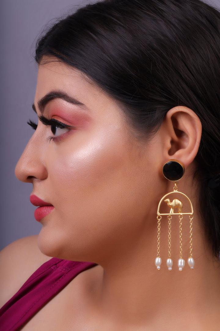Elevate your elegance with the Samaira Stone Studded Dangler Earrings. These expertly crafted earrings feature meticulously set stones that catch the light beautifully, adding a refined sparkle to any outfit. Their lightweight design ensures comfortable wear throughout the day or evening, making them ideal for both special occasions and everyday sophistication. A perfect blend of style and craftsmanship, these danglers offer a timeless accessory to enhance your jewelry collection.