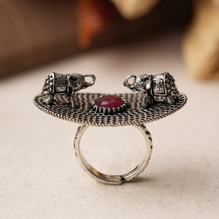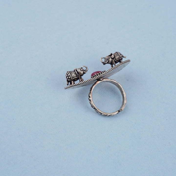 Adorned with twin elephants, this adjustable brass ring is both stylish and symbolic. Its unique design makes it a standout accessory. The adjustable band ensures a comfortable fit, adding a touch of elegance to your ensemble.