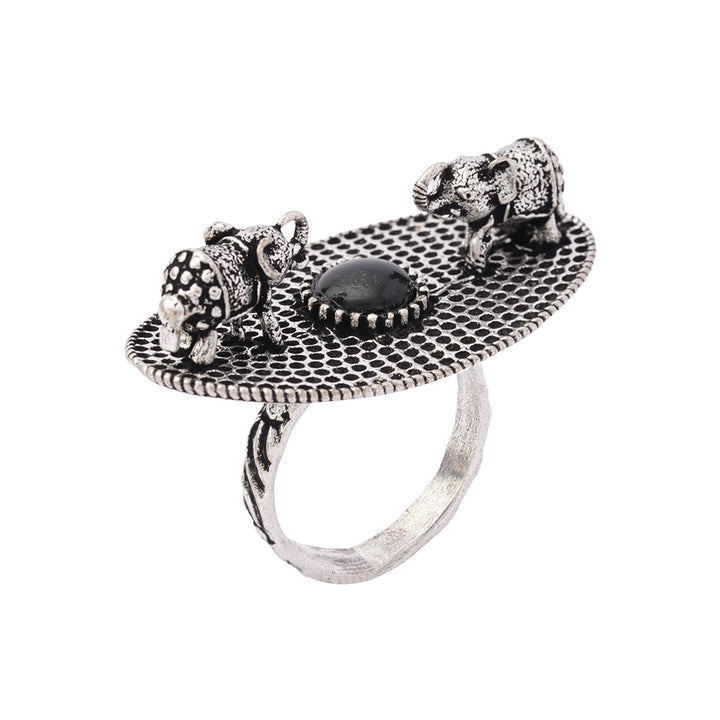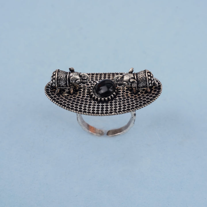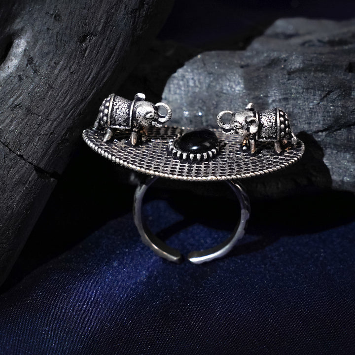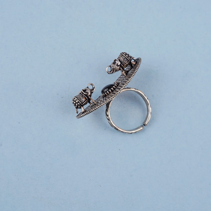 Adorned with twin elephants, this adjustable brass ring is both stylish and symbolic. Its unique design makes it a standout accessory. The adjustable band ensures a comfortable fit, adding a touch of elegance to your ensemble.