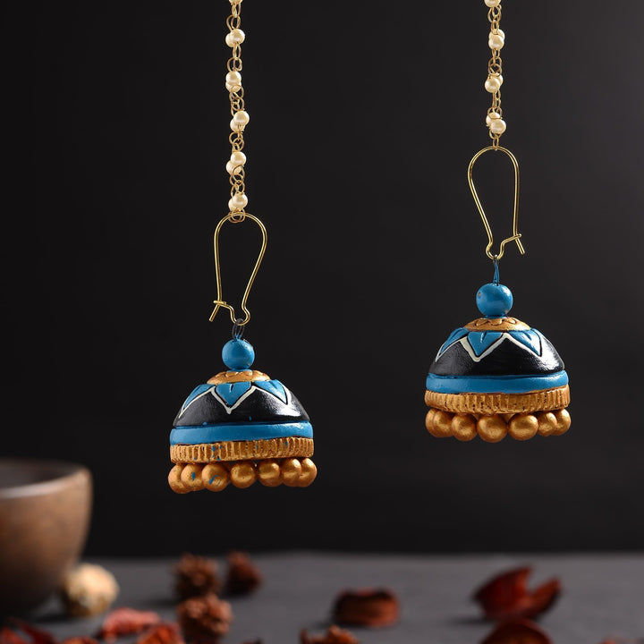 Terracotta literally means ���������baked earth��������� and is made from natural clay, giving it a reddish-brown color.������These jolly and bright earthen earrings here have a jhumki type design with tribal - ethnic vibes .ï¿