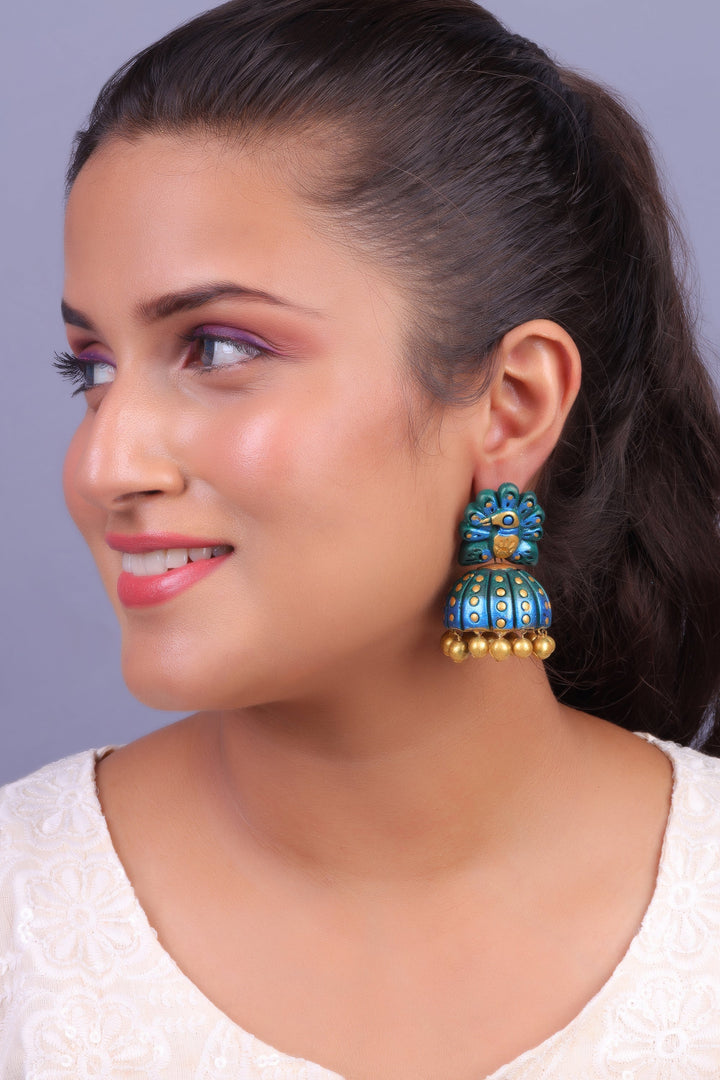 Terracotta literally means ���������baked earth��������� and is made from natural clay, giving it a reddish-brown color.����ï"1">Peacock symbolises������Vision, Self Expression, Spirituality, Awakening, Integrity, Freedom, Guidance, Protection, & Watchfulness.Stunning in its b"1">peacock������is considered the manifestation of the celestial phoenix on earth .They can be worn with skirts ,denims , saree