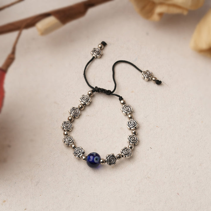 Adorn your wrist with this striking oxidized evil eye bracelet, crafted to protect and empower. With its intricate design and symbolic charm, it's a stylish talisman for warding off negativity and attracting positivity.