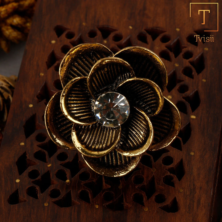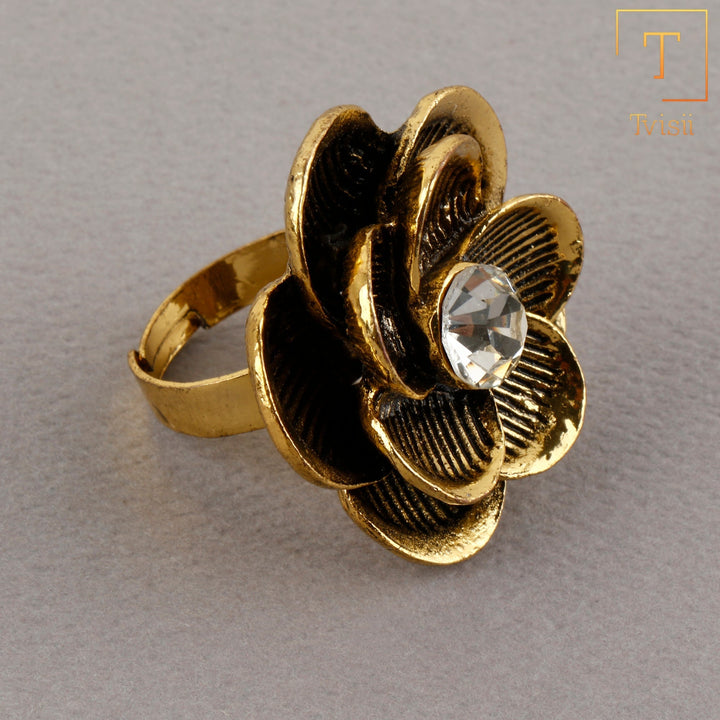 Elevate your style with the Anuradha Golden Adjustable Ring, designed for a perfect fit on any finger. Crafted with a radiant golden finish, this adjustable ring combines elegance and versatility, making it suitable for both everyday wear and special occasions. Its refined design ensures durability while providing a comfortable fit, enhancing your accessory collection with timeless charm.