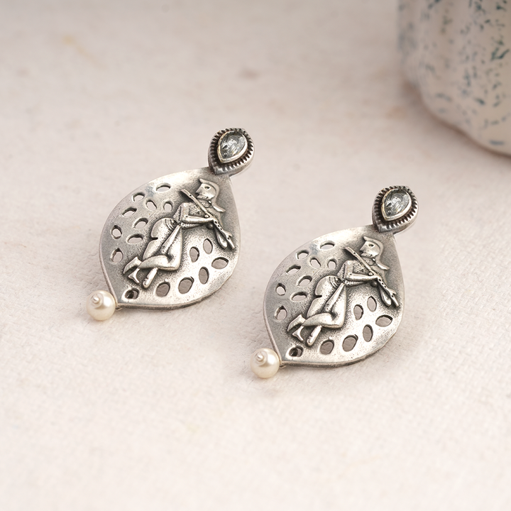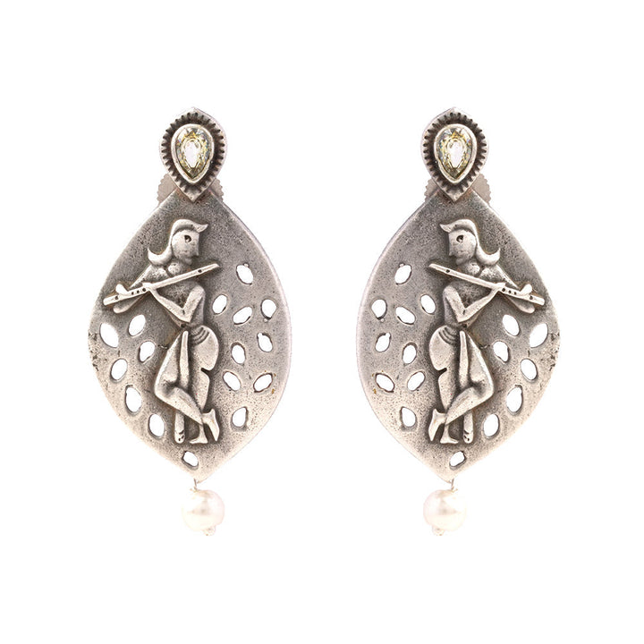 Kanha- Silver Brass Pearl dangler earrings(White)