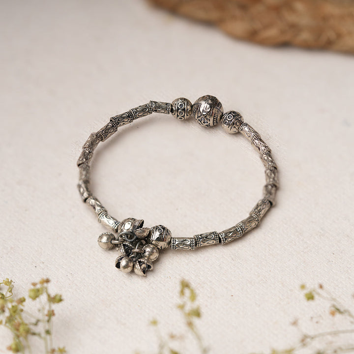 Infuse your look with traditional charm with this Ghunghroo Brass Bracelet. Featuring small brass ghunghroo bells, this bracelet produces a soft jingle with every movement. Its traditional design makes it perfect for festive occasions and cultural events.