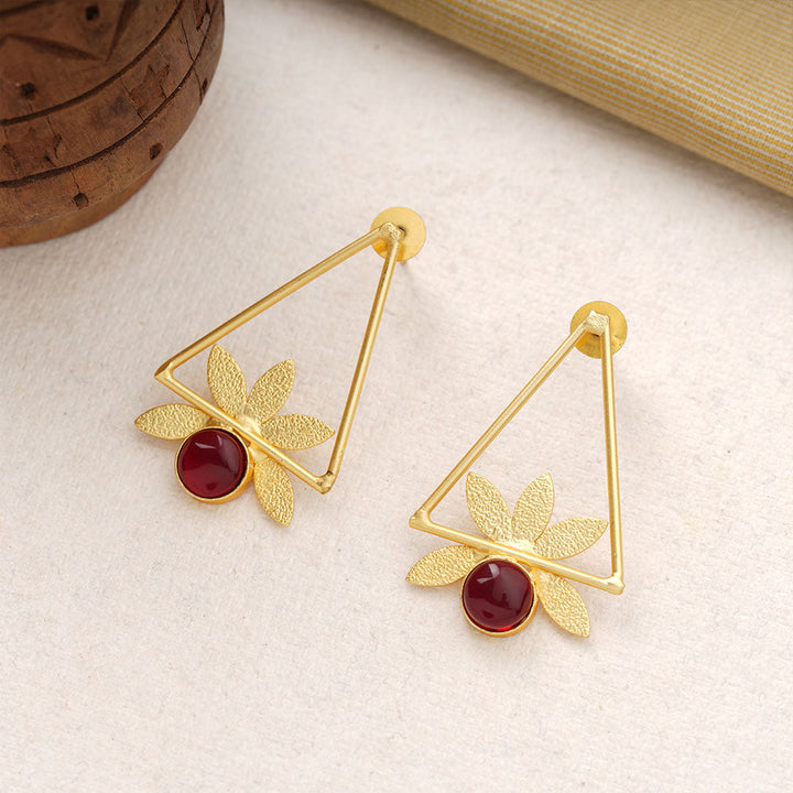 Jhanak- Stone Studded Golden Framed Dangler Earrings(Red)