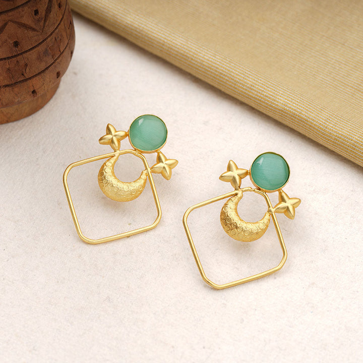Elevate your accessory collection with the Urvashi Stone Studded Golden Framed Dangler Earrings in Mint. Expertly crafted, these earrings combine shimmering stones with a refined golden frame, offering a delicate balance of elegance and contemporary style. The mint hue adds a fresh, subtle pop of color, making them ideal for both festive occasions and sophisticated daily wear. Lightweight and designed to dangle gracefully, they complement diverse outfits while ensuring lasting comfort and attention to detail.