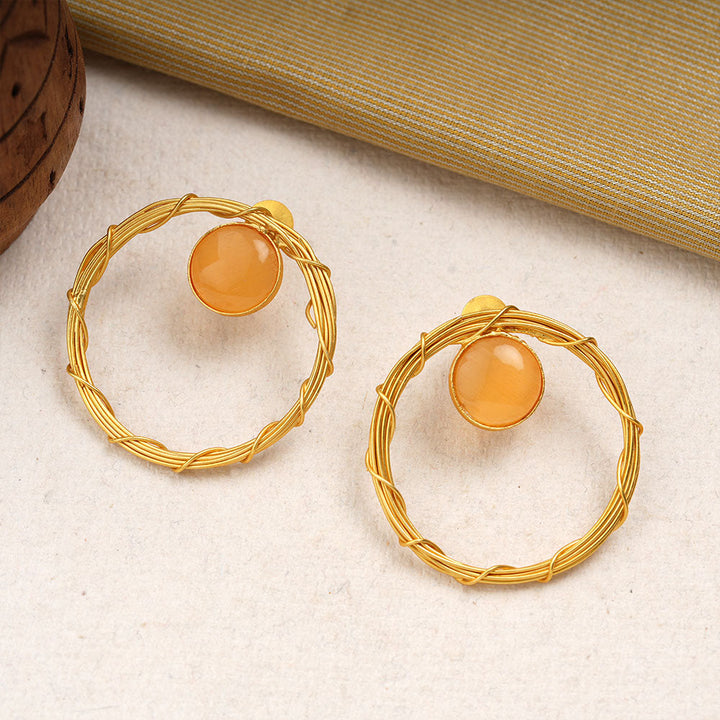 Deeptika- Stone Studded Golden Framed Dangler Earrings(Yellow)