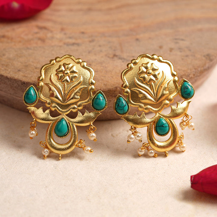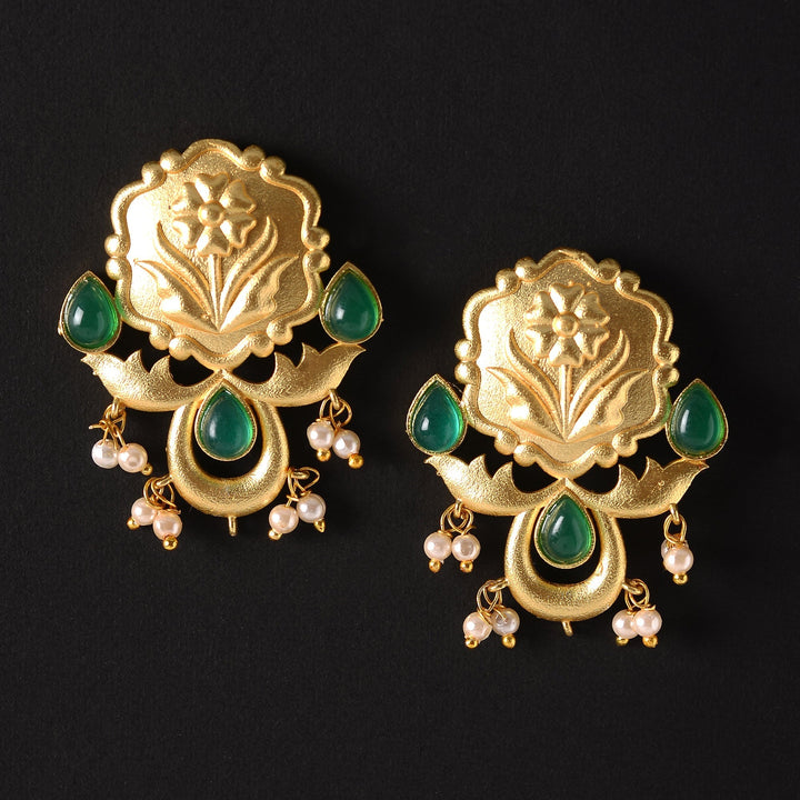 Elevate your elegance with the Ritika Stone Studded Hanging Pearls Dangler Earrings in Green. Expertly crafted, these earrings feature delicately arranged stones that catch the light, complemented by hanging pearls that add graceful movement. Their rich green hue accentuates sophistication, making them ideal for formal occasions or refined everyday wear. Experience a blend of timeless design and expert craftsmanship that enhances your style with subtle charm.