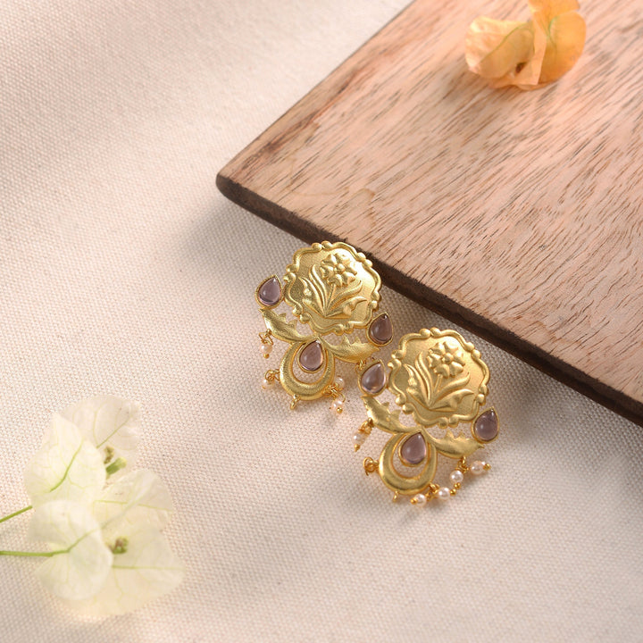 Elevate your elegance with the Ritika Stone Studded Hanging Pearls Dangler Earrings in Purple. Expertly crafted, these earrings feature delicately arranged stones that catch the light, complemented by hanging pearls that add graceful movement. Their rich green hue accentuates sophistication, making them ideal for formal occasions or refined everyday wear. Experience a blend of timeless design and expert craftsmanship that enhances your style with subtle charm.