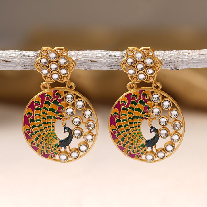Elevate your style with our Peacock enamelled Kundan Dangle. Crafted with intricate detailing and high-quality materials, this stunning piece will add a touch of elegance to any outfit. Stand out in a crowd and feel confident wearing this unique and beautiful accessory.