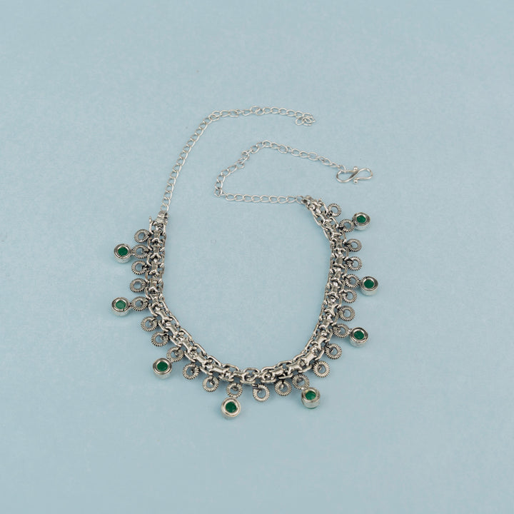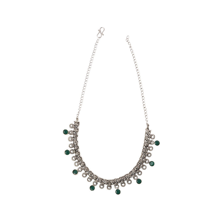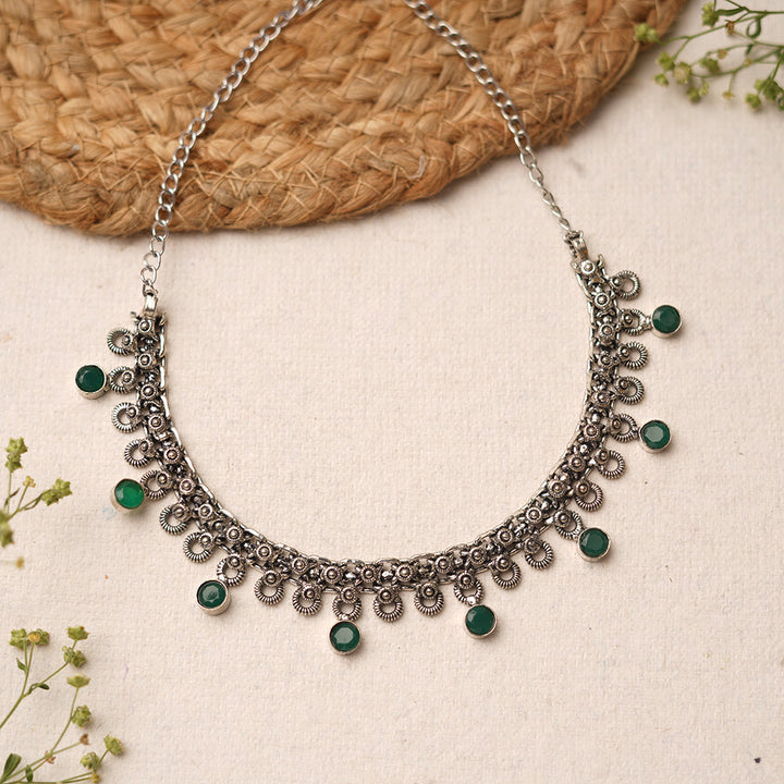 Captivate with our green stone brass neckpiece, showcasing natural beauty and exquisite craftsmanship. It's a versatile accessory that complements both casual and formal attire.