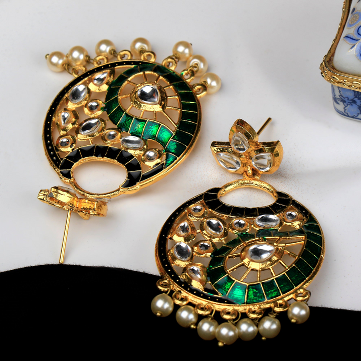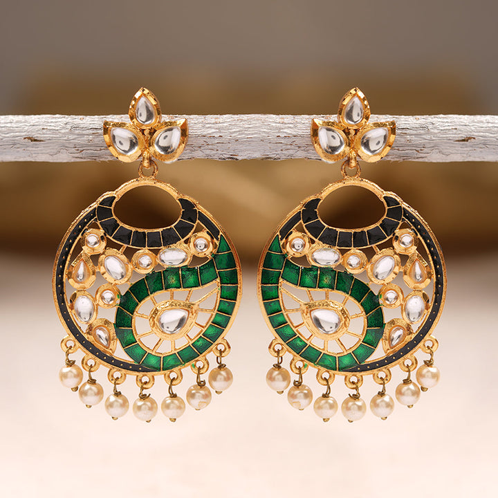 Elevate your elegance with the Lavanya Stone Studded Hanging Pearl Dangler Earrings. Featuring a captivating blend of multicolored stones delicately set around lustrous pearls, these earrings offer a refined balance of traditional charm and modern style. Their lightweight design ensures comfortable wear, making them ideal for both festive occasions and sophisticated everyday looks. Perfectly crafted to add a subtle shimmer and graceful movement, these earrings are a statement piece that enhances any ensemble with expert craftsmanship and timeless beauty.