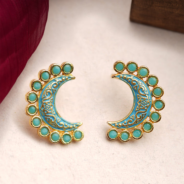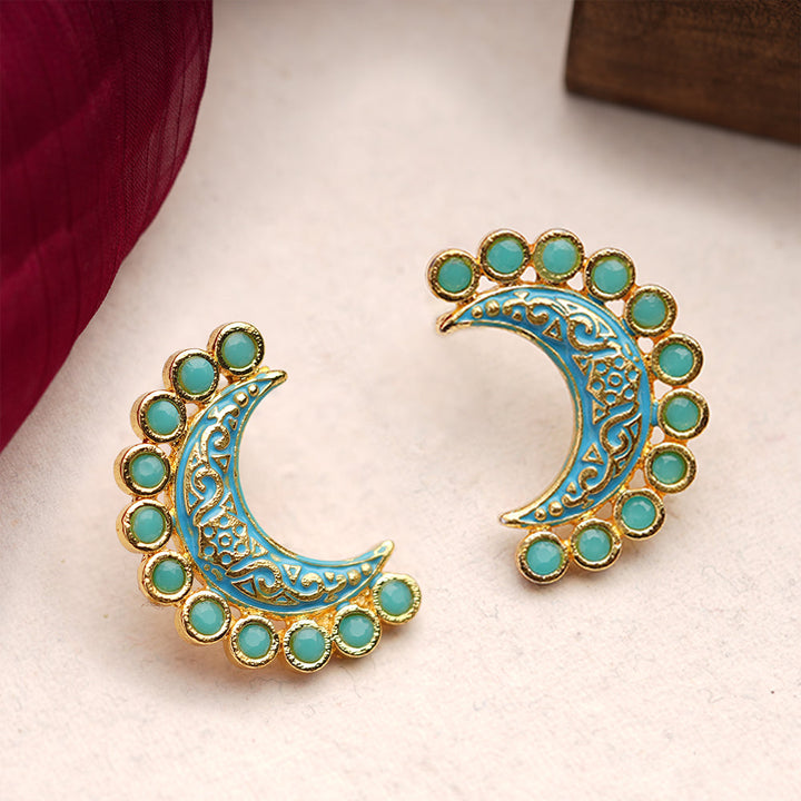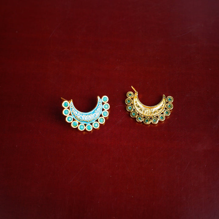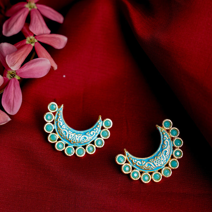 Elevate your elegance with the Kira Kundan Studded Stud Earrings in Sky Blue. Expertly crafted, these earrings blend traditional Kundan artistry with a refreshing sky blue hue, offering a subtle yet sophisticated accent to any ensemble. Their lightweight design ensures comfortable wear for extended periods, making them ideal for both special occasions and everyday refinement. Add a touch of timeless charm to your collection with these meticulously detailed studs.