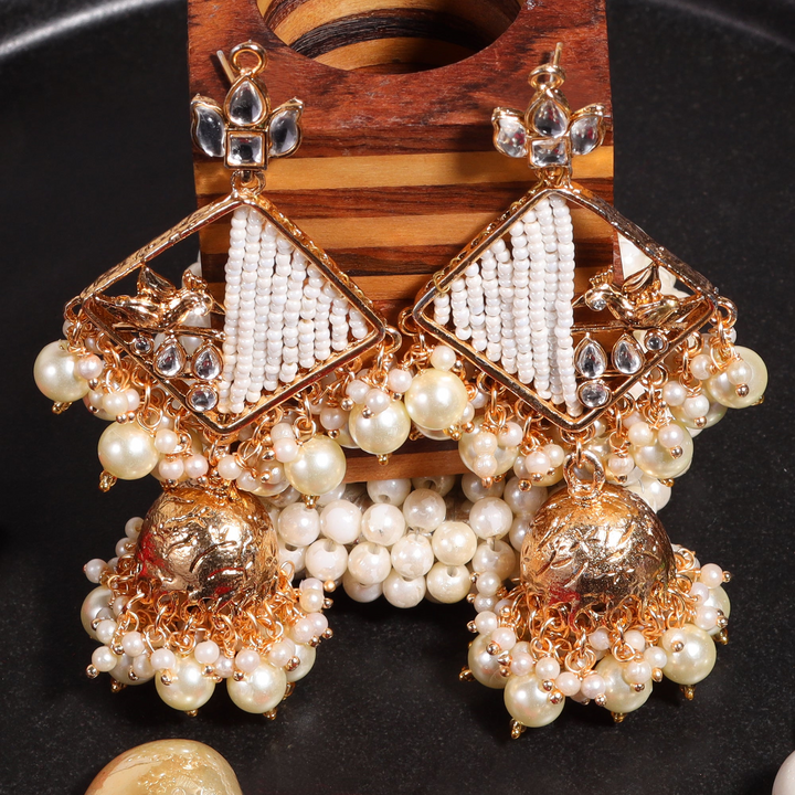 Elevate your traditional collection with the Jiya Stone Studded Hanging Pearl Jhumki Earrings. Expertly crafted, these earrings feature intricate stone detailing paired with elegant hanging pearls, creating a refined fusion of classic charm and contemporary style. Perfect for festive occasions or enhancing your ethnic ensemble, they offer a graceful look that complements diverse outfits. Lightweight yet durable, these jhumkis provide comfort along with sophisticated appeal.
