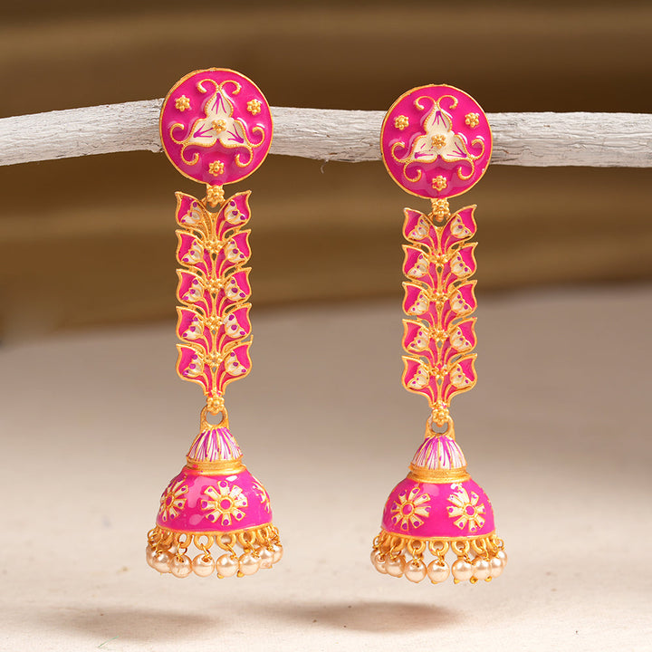 Elevate your traditional collection with the Kaira Hanging Pearl Jhumki Earrings. Crafted for a refined balance of elegance and grace, these earrings feature delicately suspended pearls that enhance any ensemble. Their intricate design offers a timeless appeal, making them ideal for festive occasions or sophisticated everyday wear. Meticulously crafted, Kaira earrings add a touch of classic beauty, ensuring you stand out with subtle sophistication.