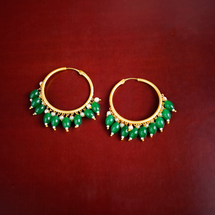 Zoya- Hanging Pearl Hoops Earrings(Green)
