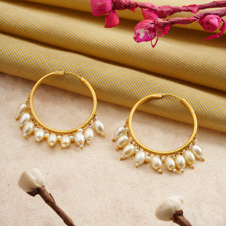 The Zoya Hanging Pearl Hoops Earrings in white offer a pristine and elegant addition to your jewelry collection. Featuring delicate white pearls gracefully suspended from polished hoops, these earrings blend timeless sophistication with modern design. Ideal for enhancing both formal attire and everyday ensembles, they provide a refined, lightweight wear that complements any look with subtle charm and expert craftsmanship.