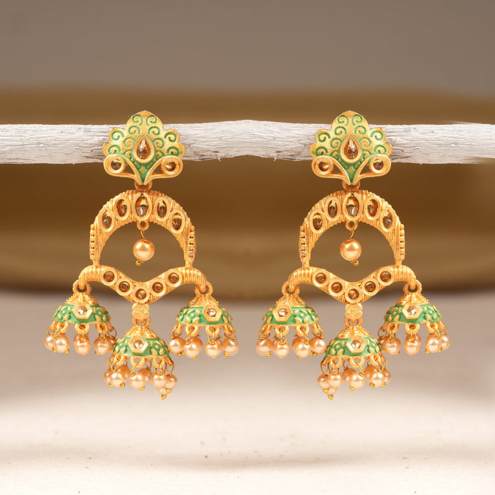Elevate your ensemble with the Gargi Stone Studded Hanging Pearl Dangler Earrings. Expertly crafted, these earrings combine sparkling stones with lustrous pearls for a refined, timeless appeal. Their delicate dangle design adds graceful movement, making them perfect for formal occasions or enhancing everyday elegance. Experience a subtle blend of sophistication and classic style with each wear.