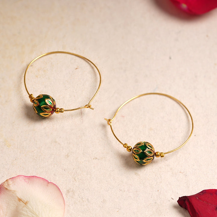 Elevate your style with the Rajvi Pearl Hoop Earrings in green. These earrings showcase lustrous pearls artfully arranged on a sleek hoop, blending classic elegance with contemporary design. Perfect for enhancing both casual and formal looks, they offer a refined touch that complements a variety of outfits with expert craftsmanship and subtle sophistication.
