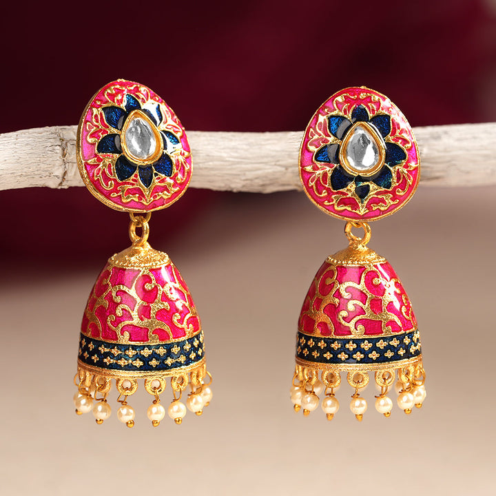 These meenakari earrings are crafted with intricate detail and a delicate design. Their lightweight design makes them the perfect accessory for any occasion. A handcrafted piece of jewelry made of quality materials makes these earrings a timeless and unique addition to any jewelry collection.