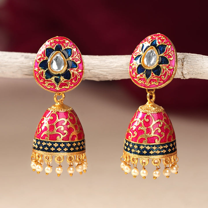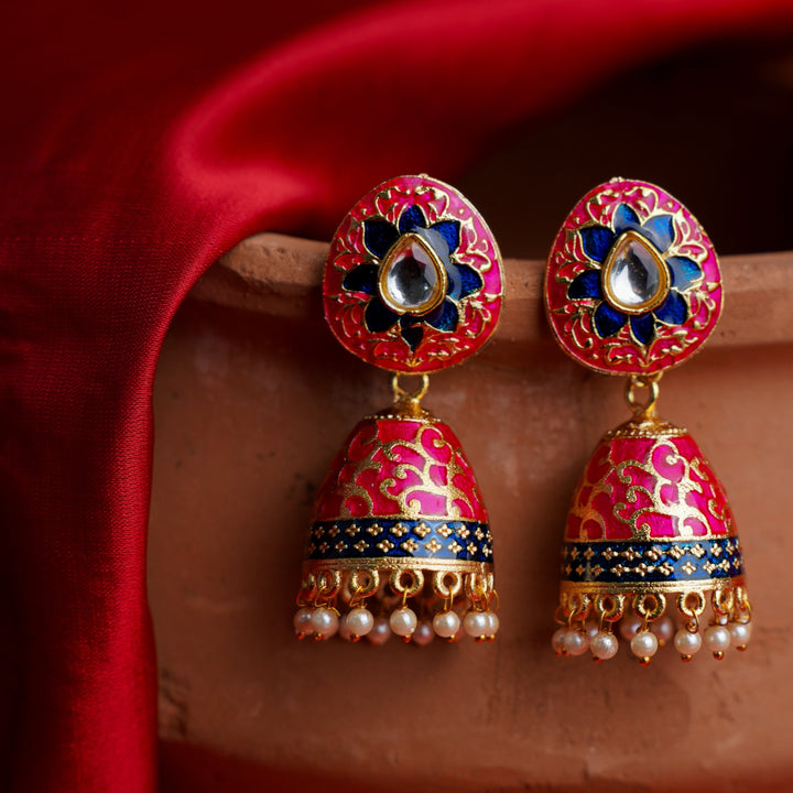 Elevate your elegance with the Advika Stone Studded Hanging Pearls Jhumka Earrings in Red. These intricately crafted earrings feature delicate stone embellishments paired with gracefully hanging pearls, creating a timeless blend of sophistication and charm. Perfectly suited for traditional occasions or enhancing modern attire, they offer a refined statement while ensuring lightweight comfort for extended wear.