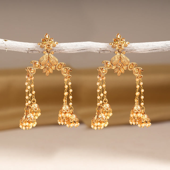Elevate your style with the Ihita Stone Studded Hanging Pearl Dangler Earrings. Expertly crafted, these earrings combine sparkling stones with lustrous hanging pearls to create a refined, timeless accessory. Perfect for both formal occasions and elegant everyday wear, they offer a delicate balance of sophistication and charm. Designed to complement a variety of outfits, these earrings add a subtle yet striking touch to your ensemble.