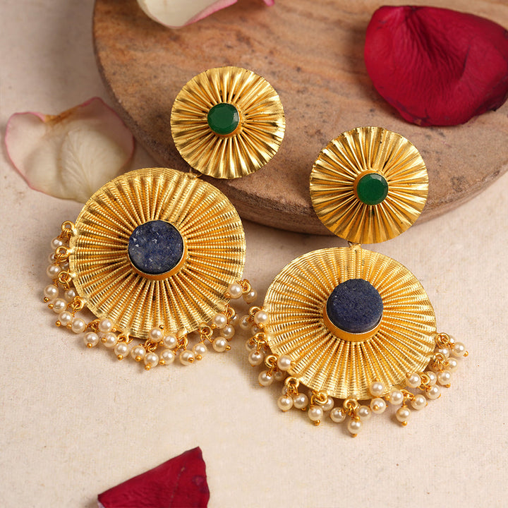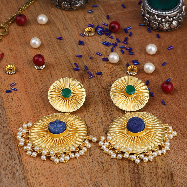 Elevate your ensemble with the Ragini Natural Stone Studded Dangler Earrings. Expertly crafted, these earrings feature carefully selected natural stones that add a refined touch of elegance. Their lightweight design ensures comfortable wear, while the dangler style creates graceful movement, making them ideal for both everyday sophistication and special occasions. Perfect for those who appreciate artisanal quality and timeless charm.