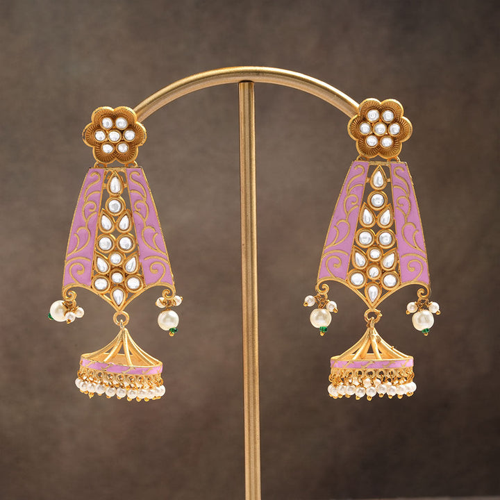 Nirvi stone-studded danglers combine delicate craftsmanship with contemporary elegance. Each earring features carefully selected stones set in a studded design that catches light beautifully, creating subtle sparkle with every movement. The dangler silhouette elongates the face while remaining lightweight for all-day comfort. Perfect for both everyday wear and special occasions, these earrings transition seamlessly from casual to formal settings. The baby pink tone adds a soft, sophisticated touch to any complexion and pairs effortlessly with neutral or jewel-toned wardrobes.