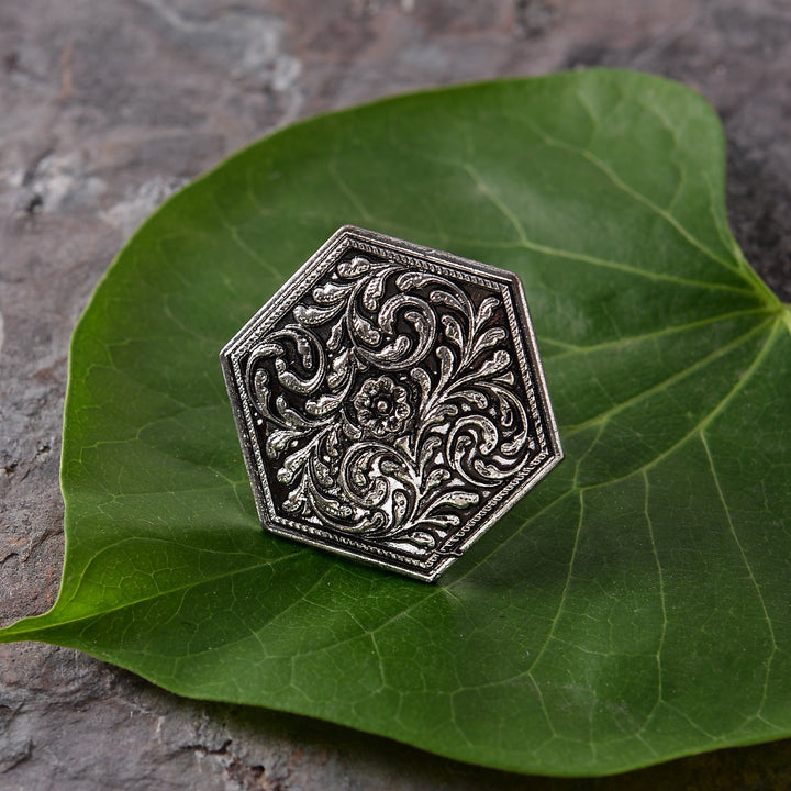 Elegantly crafted with oxidised finishes, our adjustable rings offer vintage charm and versatility. Each piece features intricate patterns and a rustic appeal, perfect for complementing casual or formal attire with timeless style.