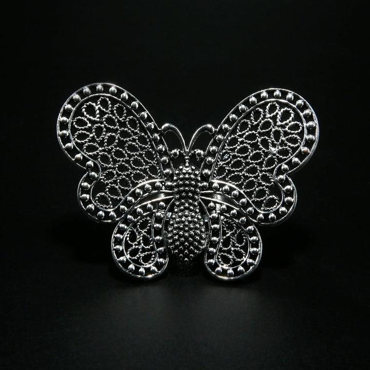 Delicate butterfly motif on an oxidised ring, symbolising grace and beauty, ideal for adding a touch of whimsy to your ensemble.