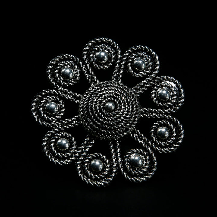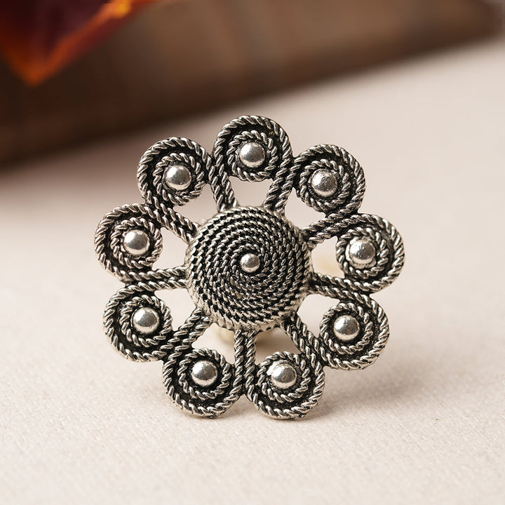 Floral-inspired ring with oxidised finish, capturing timeless beauty and elegance in its intricate floral design.