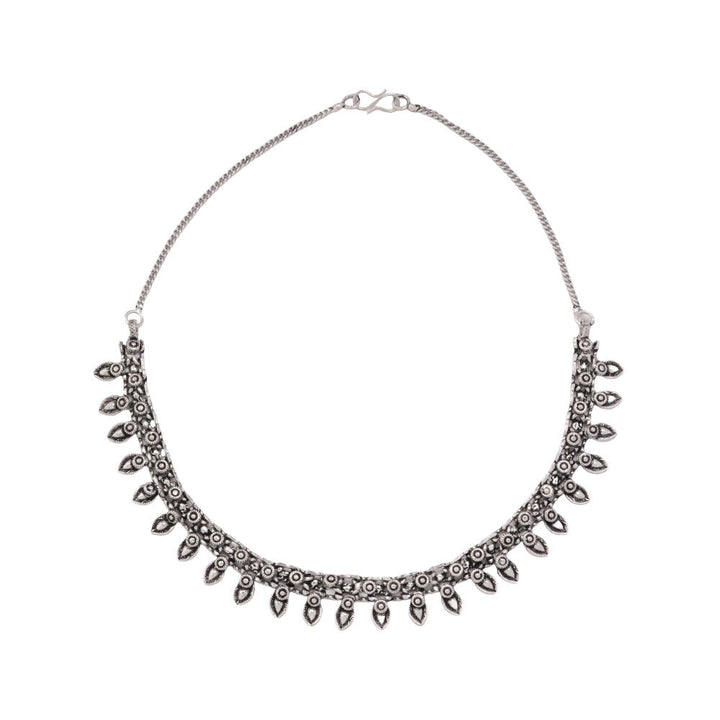 Rustic elegance defines this oxidised necklace. With its vintage-inspired finish and intricate patterns, it's a perfect choice for those who appreciate unique, artisanal jewelry.