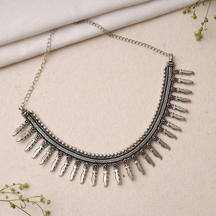 Discover rustic elegance with our oxidised necklace, intricately designed to blend vintage charm with contemporary flair. Perfect for adding a touch of antique allure to your ensemble, ideal for both casual and formal occasions.