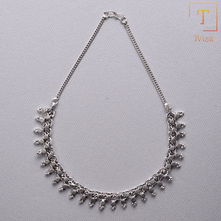 Evoke vintage allure with our oxidised necklace, crafted for timeless elegance. Featuring intricate patterns and a rustic finish, it adds a touch of antique charm to any outfit, perfect for those who appreciate unique artisanal jewelry.