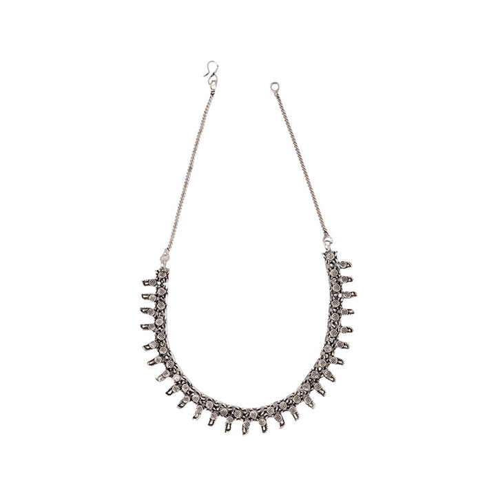 Evoke vintage allure with our oxidised necklace, crafted for timeless elegance. Featuring intricate patterns and a rustic finish, it adds a touch of antique charm to any outfit, perfect for those who appreciate unique artisanal jewelry.