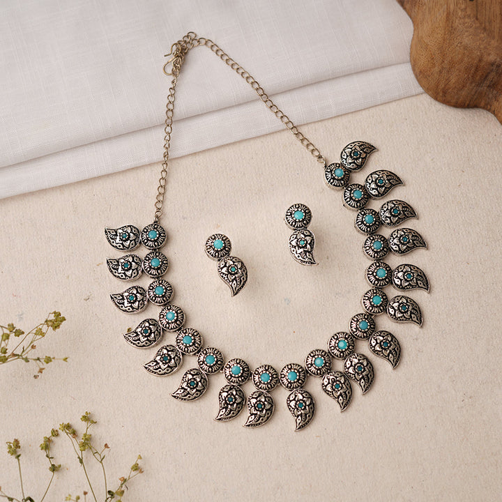 Indulge in timeless elegance with our oxidised necklace set, featuring intricate designs and rustic charm. Perfect for those who appreciate vintage-inspired jewelry, ideal for both casual and formal occasions.