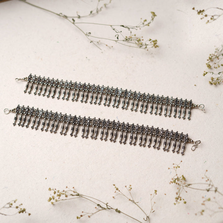 Embrace traditional beauty with our oxidised payal, crafted with detailed patterns and a classic oxidised finish for a timeless look.