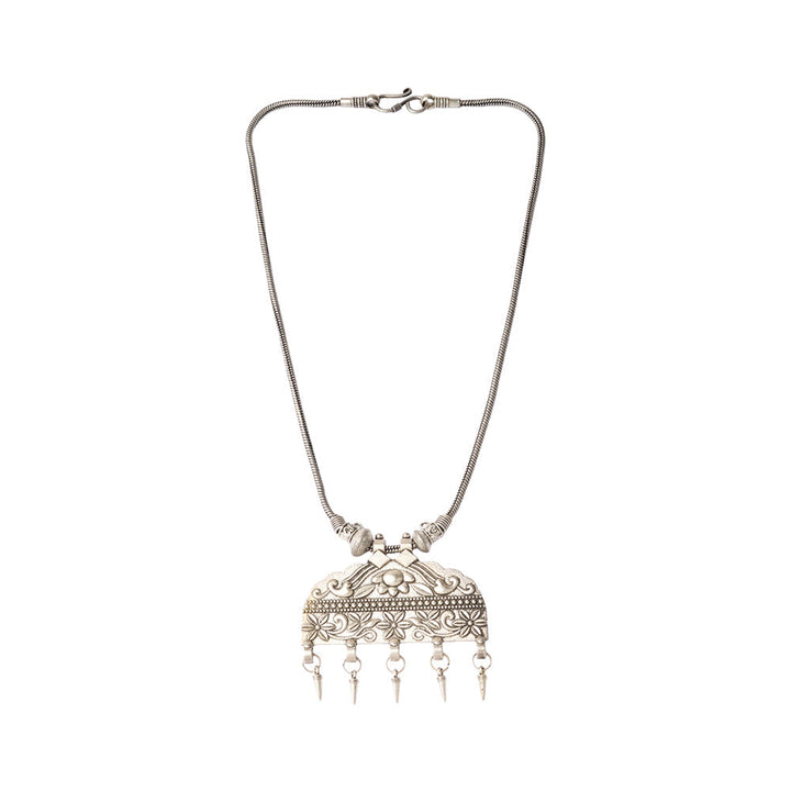 Rustic elegance defines this oxidised necklace. With its vintage-inspired finish and intricate patterns, it's a perfect choice for those who appreciate unique, artisanal jewelry.
